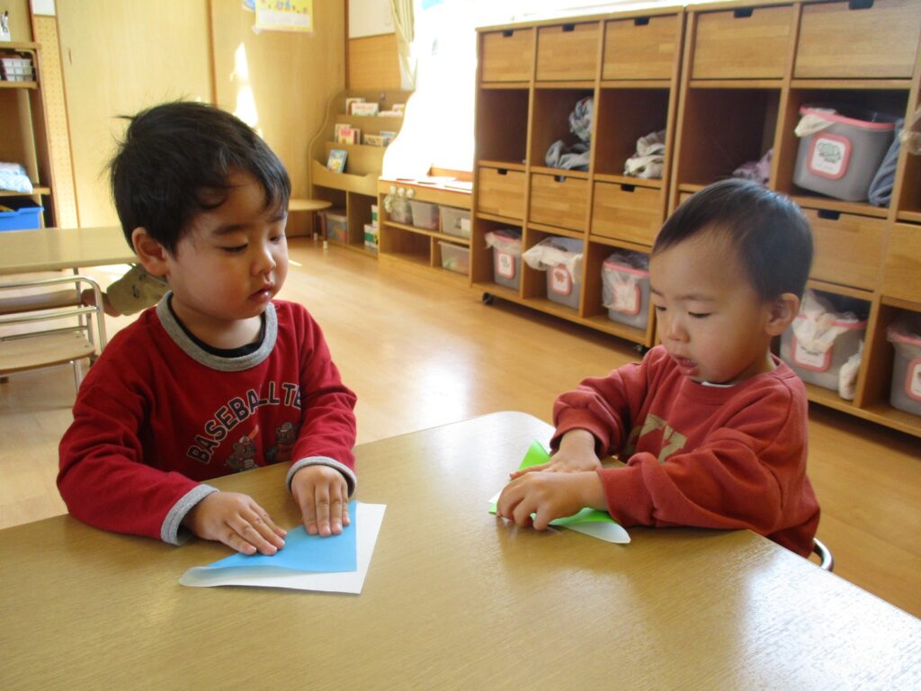 HOME > ブログ > 折り紙に挑戦! いきいきぐみ (1・2歳児クラス)